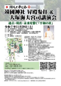 令和7年11月29日開催の靖国神社参拝と大塚宮司の講演会についてのお知らせチラシです。
